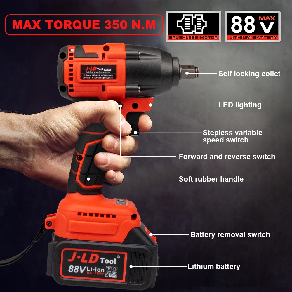 JLD 88Vf Bor Dan Impact Wrench Paket Lengkap Brushless 350N.m Impact Baterai Impact Cordless Impact Jld Mesin Bor Batera