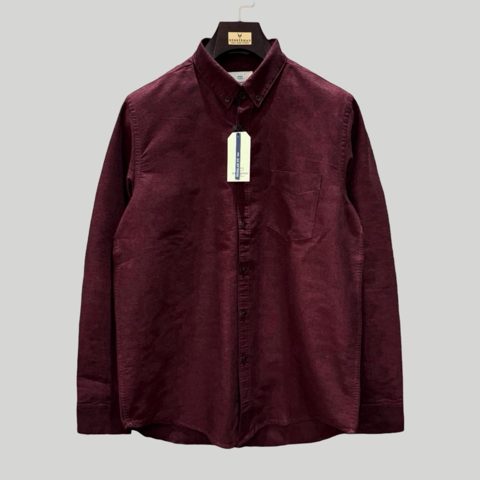 Peternation kemeja pria oxford maroon kerah basic panjang regular fit