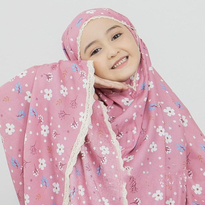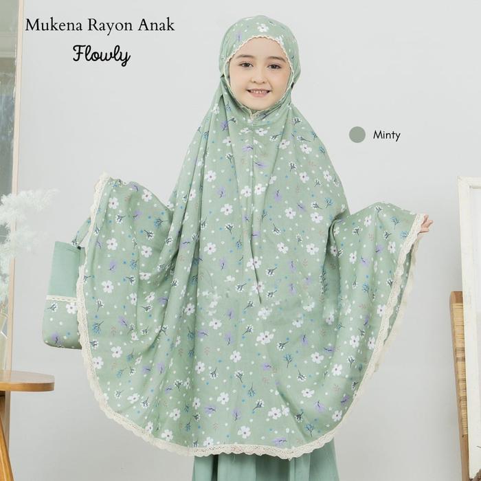 Murah Mukena Anak Tanggung Rayon Flowly Mukena Anak Usia 8-11thn Mukena Anak Rayon Printing Renda - Hitam Keren
