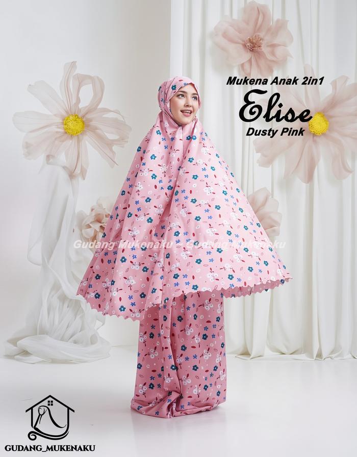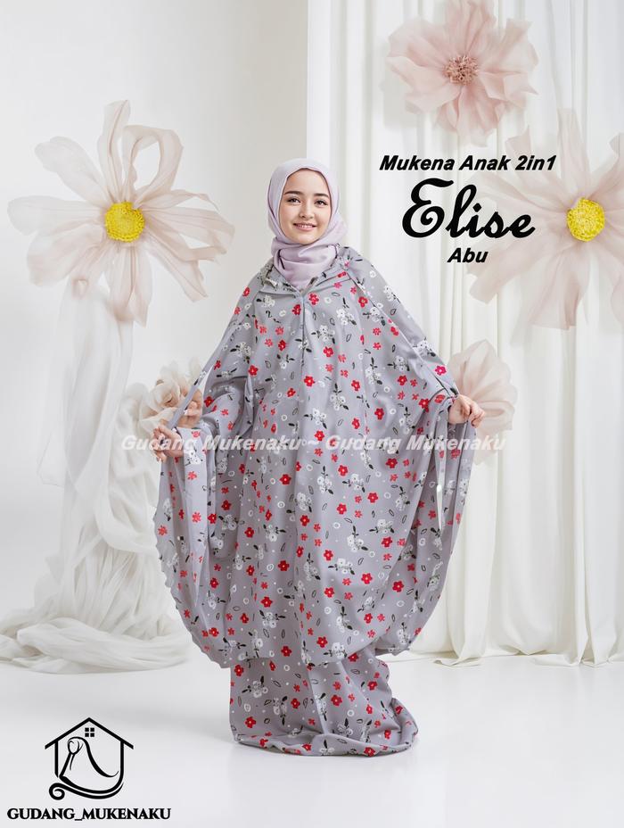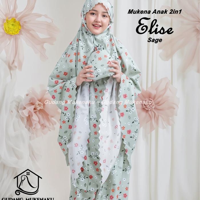 Promo MUKENA ANAK TANGGUNG 2 IN 1 ELISE FULL BUNGA BAHAN KATUN PREMIUM FREE TAS - Elise Sage Anak Elegan