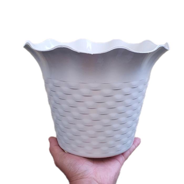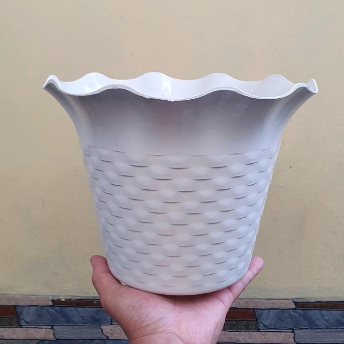 Terlaris Pot cristal ukuran 25 paket isi 6pcs pot bunga cantik motif bunga 25 cm Tanaman - putih paket isi 6pcs Elegan