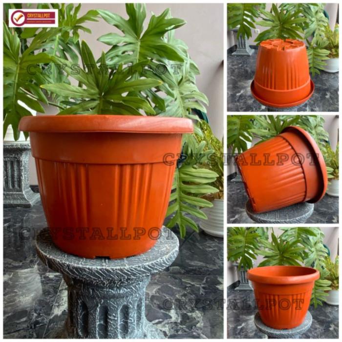 Promo pot bunga tanaman plastik MERAH BATA GRACE 35cm kuping - MERAH BATA Elegan