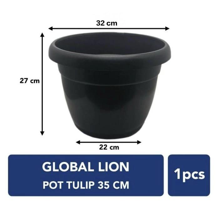 Terlaris Pot Kuping Tanaman Plastik 35 cm Hitam Tulip Elegan