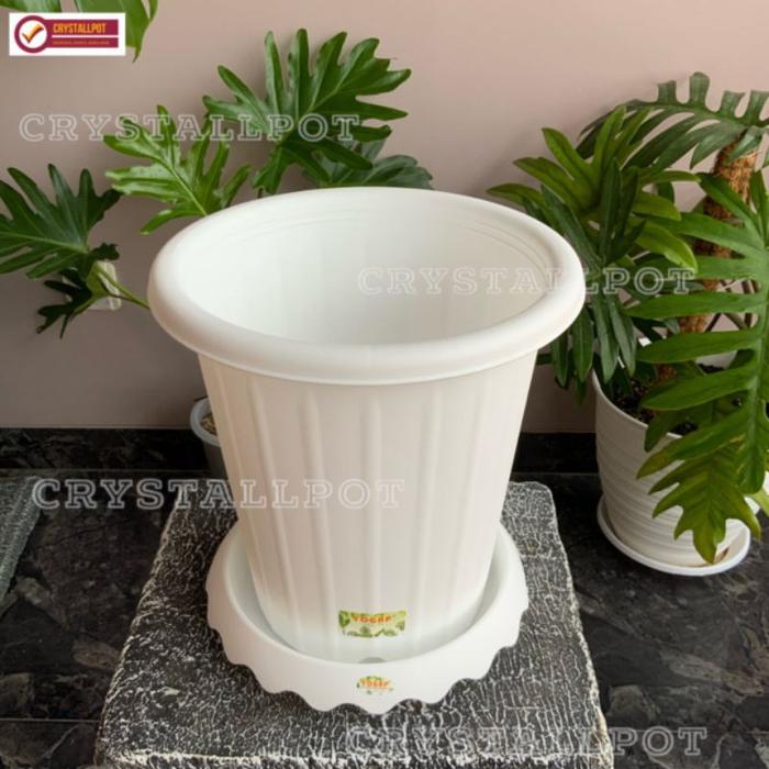 Promo pot bunga tanaman tinggi yogap YPT 13 bahan tebal + tatakan npt 15 - putih Elegan