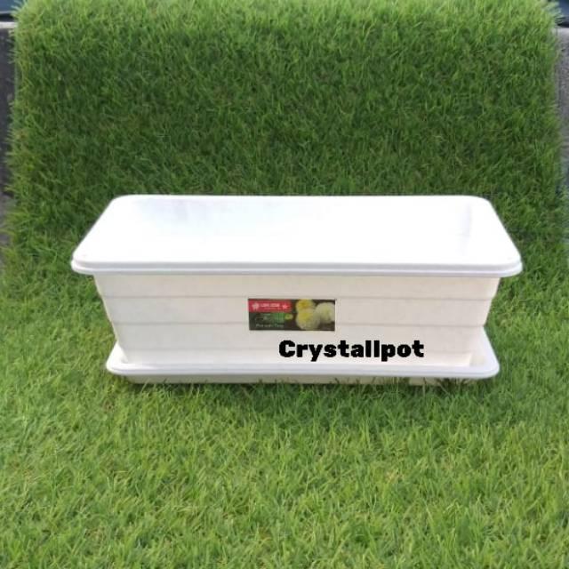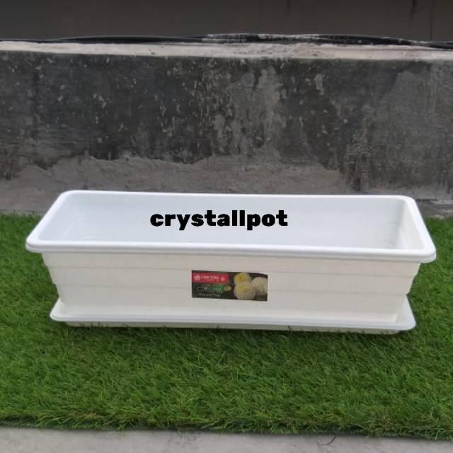 Terlaris Pot bunga panjang putih keramik TRIVETTO S + tatakan bawah 28cm Elegan