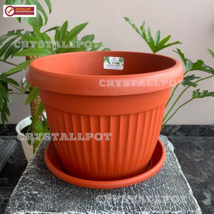 Promo Pot Bunga Claris Warna Merah Bata 25cm dengan Tatakan Bawah - CLARIS 5825 - Plastik Elegan