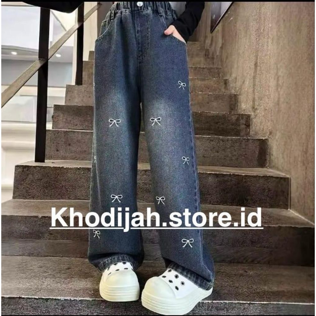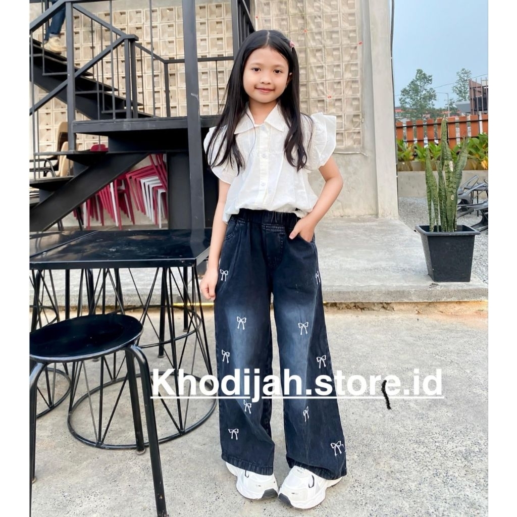 Celana Jeans Kulot Anak CELANA SKENA KULOT JEANS ANAK PEREMPUAN USIA 3-13 TAHUN BORDIR PITA LUCU KEKINIAN