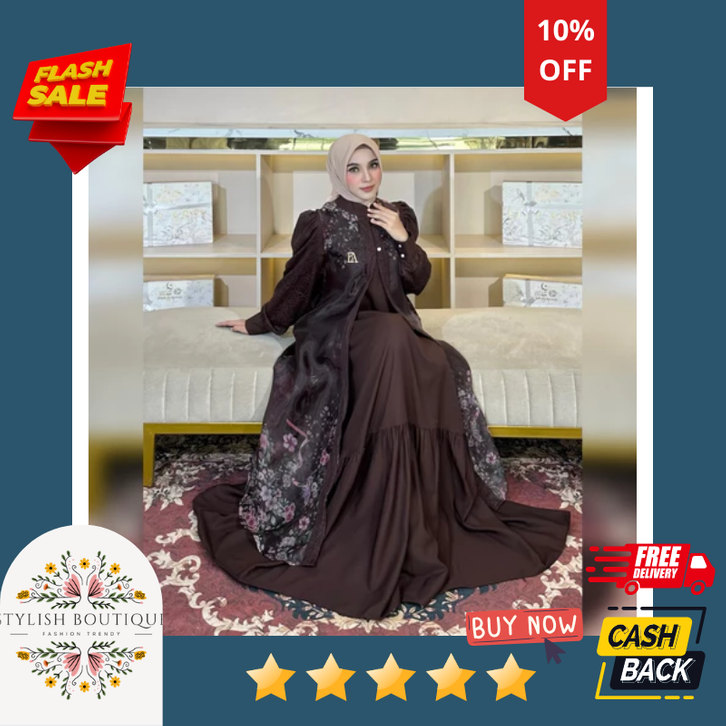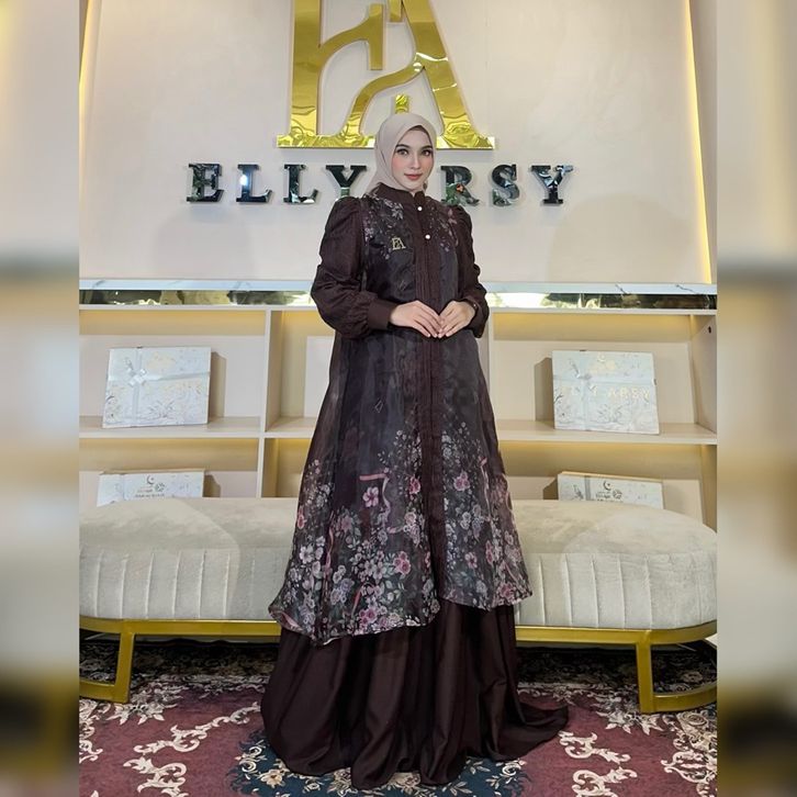 [Star] Gamis Lebaran Elly Arsy 2026 Helena Dress Material Lady Zr Organza Pattern Exlusive By Elly Arsy Only Gamis
