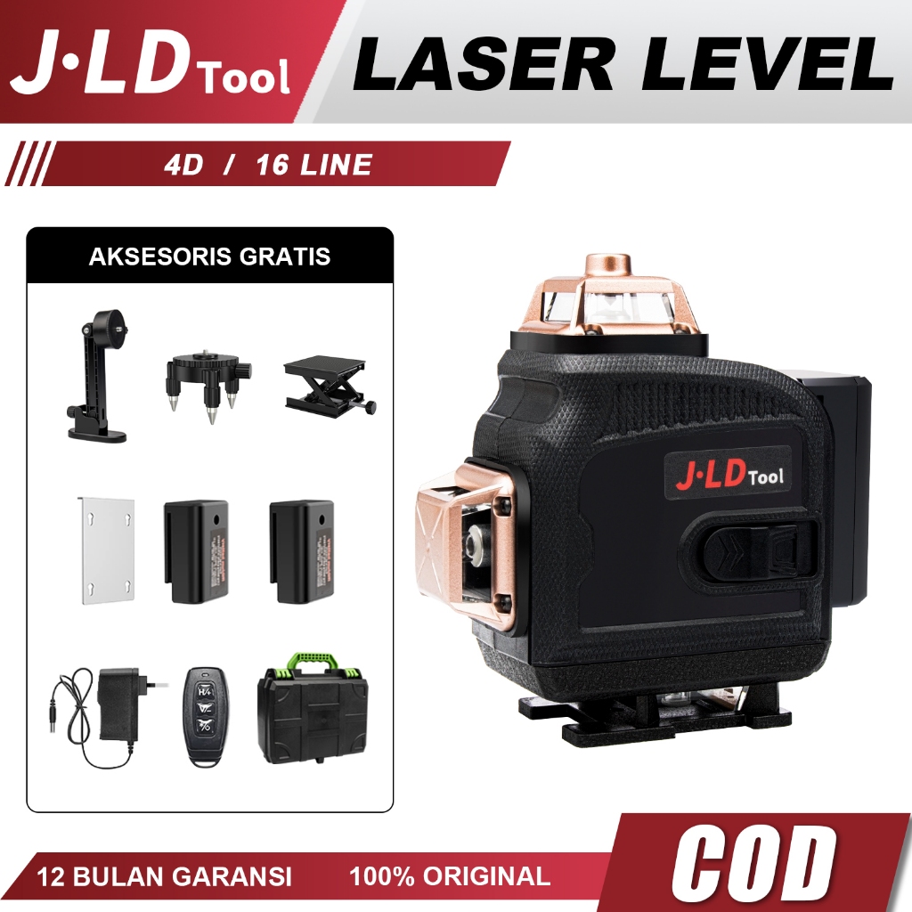 JLD Laser Level 4D 16 Lines Mesin Self Leveling Laser 360 Sinar Hijau dengan Remot Laser Fullset