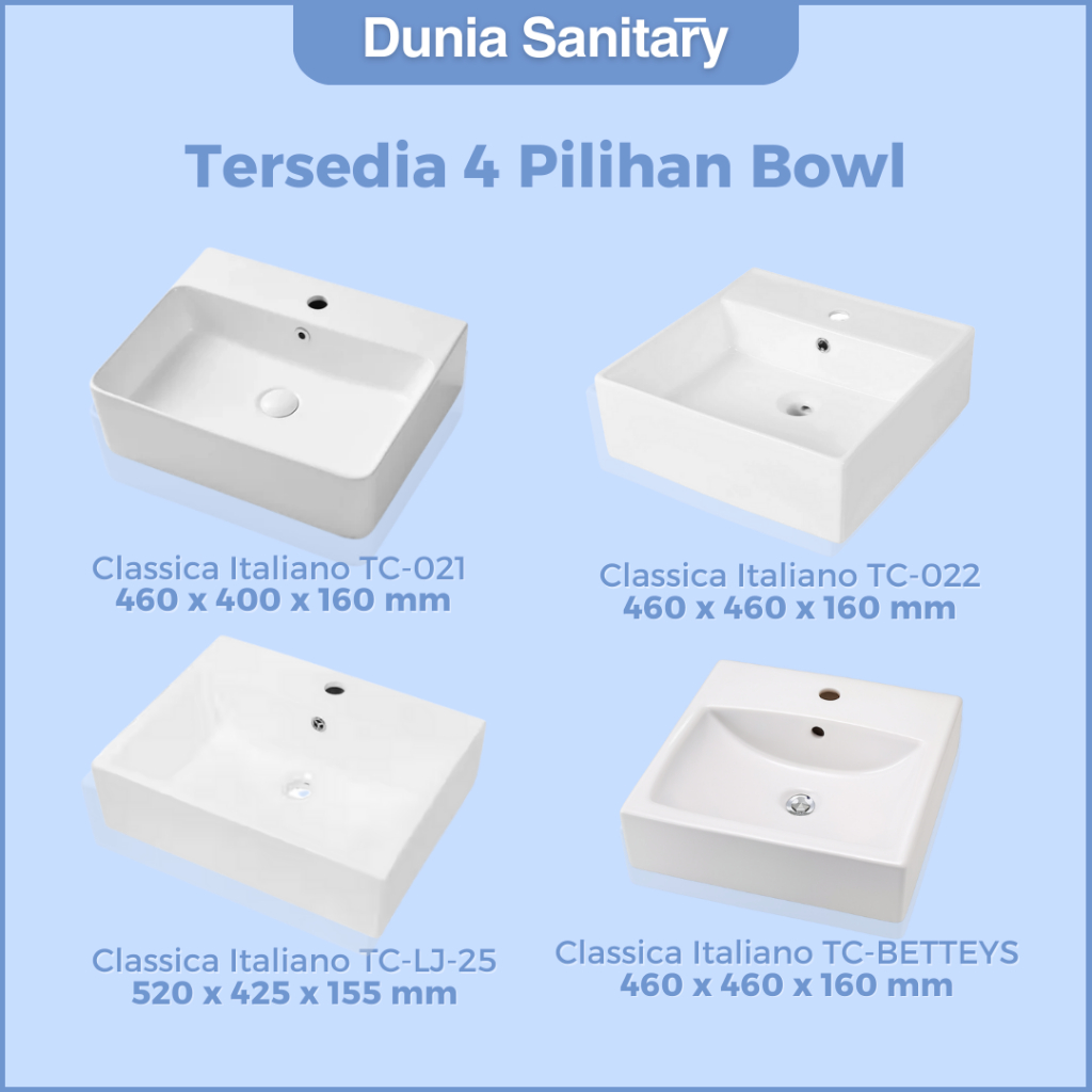 CLASSICA ITALIANO SET Wastafel Keramik MEWAH ERN MINIMALIST Afur + Siphon + KRAN TC-021-022-Betteys-LJ-STAS
