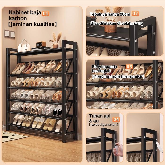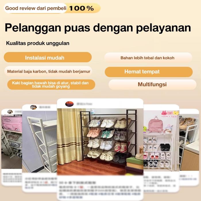 Rak Sepatu Baja Karbon Besar Kokoh Rak Sepatu Stainless 5 Susun Tempat Sepatu Kokoh Rak Susun Serbaguna - 5S-9020115Cm