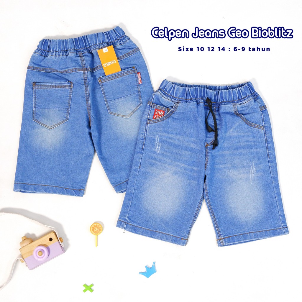 Celana Jeans Pendek Anak Celana Pendek Jeans Celpen Anak Laki GEO Melar Tebal 3-9 Tahun By Gymbkids