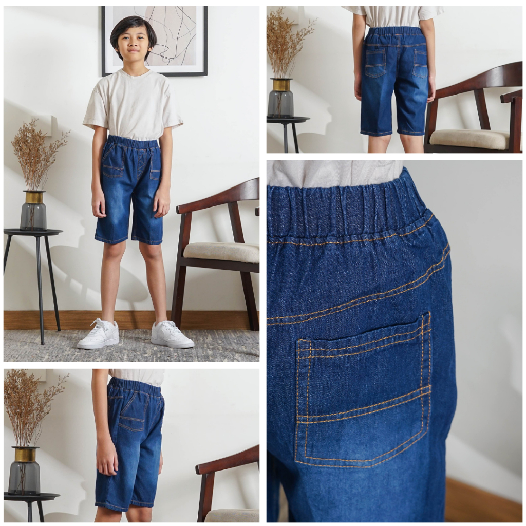 Celana Jeans Pendek Anak LuckyOne Celana Pendek Soft Jeans 3/4 Anak Laki Laki Bahan Denim 6,5 Onz Full Karet Tanpa Resle