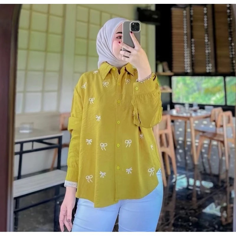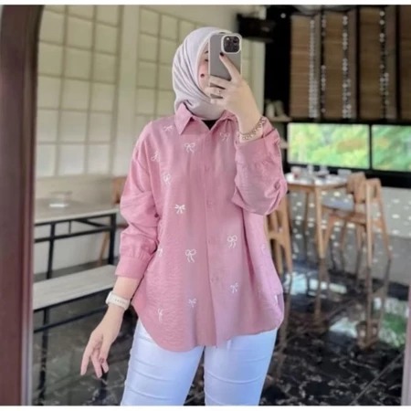KEMEJA WANITA KHANSA BORDIR PITA OVERSIZE TRENDY NEW GRATIS ONGKIR KEMEJA BORDIR PITA REMAJA DEWASA