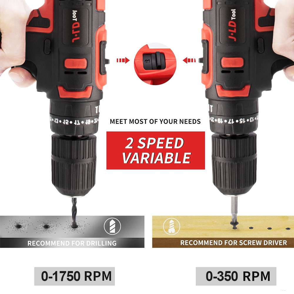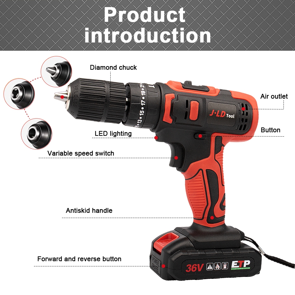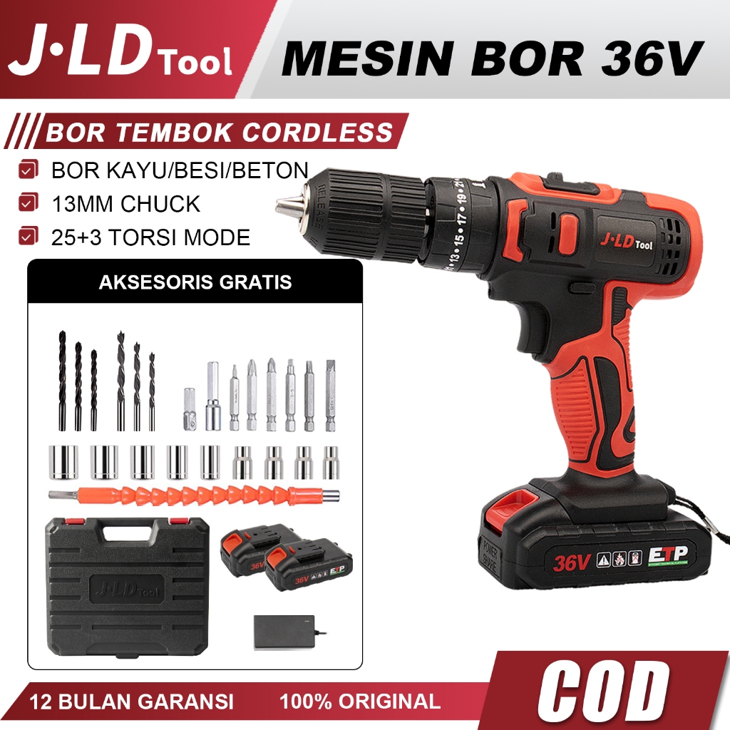 JLD 36Vf Mesin Bor Baterai 13mm Bor Cas jld 2 Batre Case 25+3 Bor Cordless Impact Drill Bor Tangan Bor Baterai Murah Ber