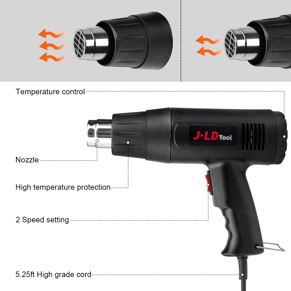 JLD Heat Gun Angin Panas 1500W 2 e - untuk Kerajinan, Repair HP, Melamin, Tempel Vinyl, Lepas Stiker, Soldir, Selang He