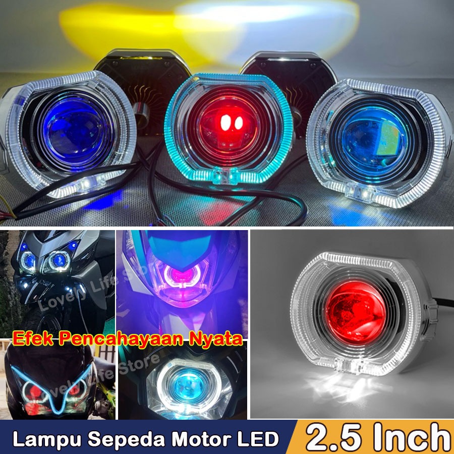 Projie Biled 2.5 Inch Lampu Depan LED Sepeda Motor Universal Built-In Lensa Mata Setan Kedap Air Lampu Sorot Dekat Dan Jauh Lampu Peringatan