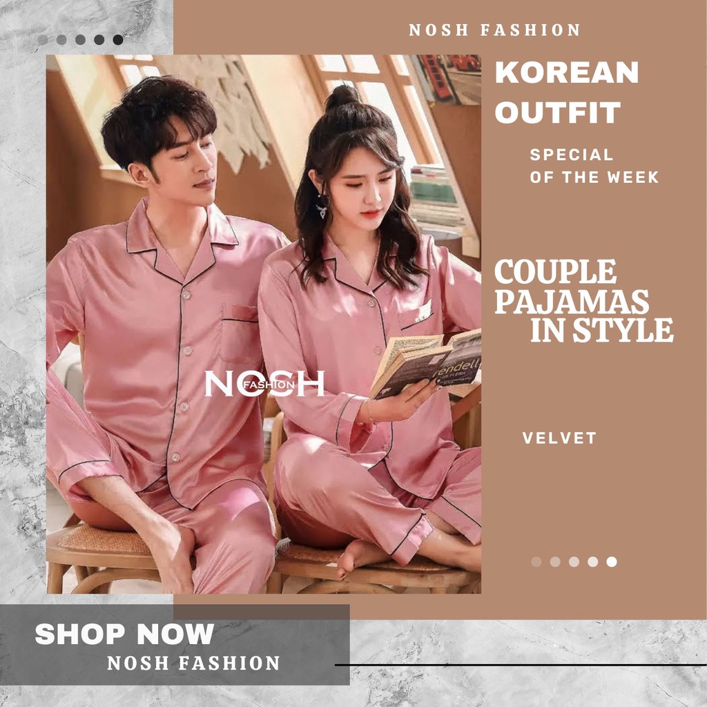 Baju Tidur Piyama Couple Lengan Panjang Satin M/L / Couple Pajamas Saten - NOSH