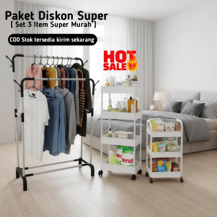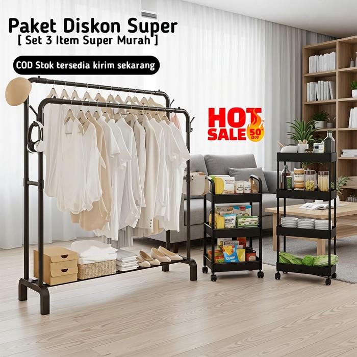 Portable Rack Lacook Combo 3In1 Rak Gantungan Baju Rak Sepatu Penyimpanan Jaket Topi Rak Jemuran Baju Rak Sepatu Sanda