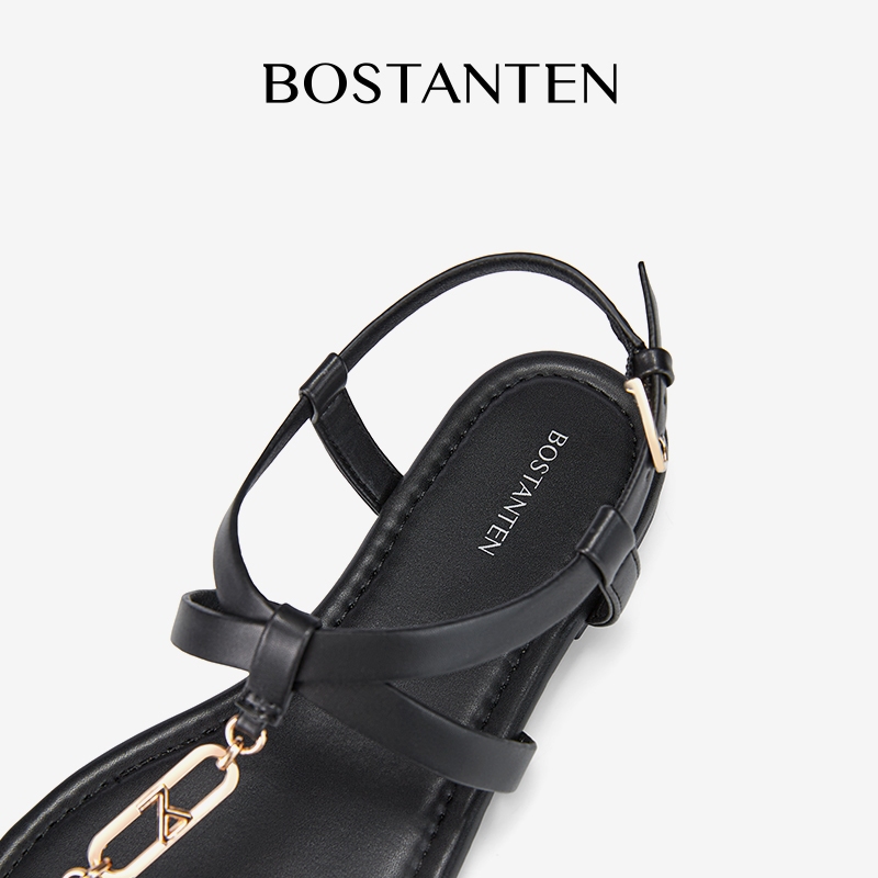 BOSTANTEN Sandal Wanita Sandal Sepatu berbentuk T dengan gesper logam kecil
