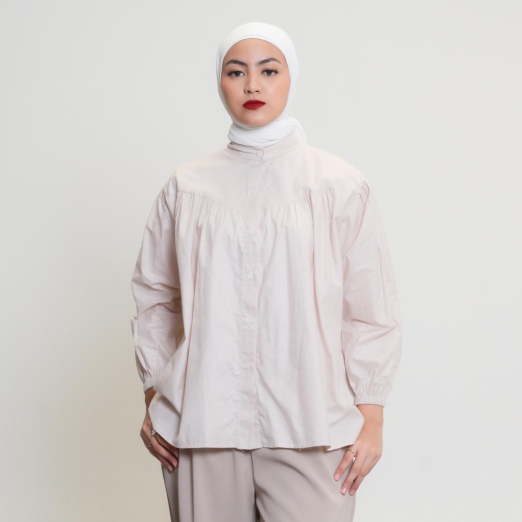ELF STORE - EMERALDA Kemeja Wanita Kantoran Polos Kekinian Bahan Katun Jumbo Atasan Panjang Muslim
