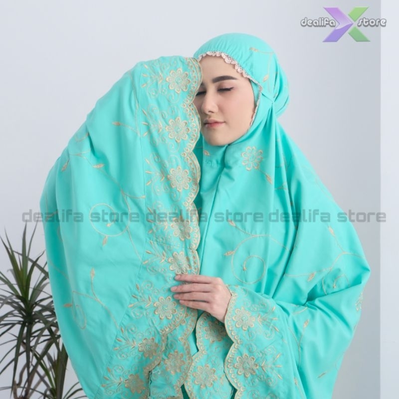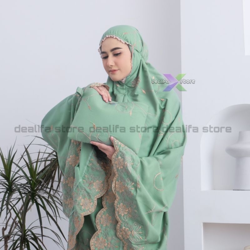 DEALIFA - Mukena Dewasa Gracella Ada Tas Bunga Teratai Full Bordir Katun Premium