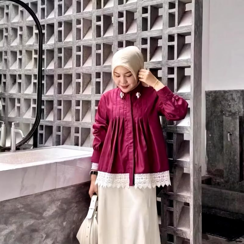 Kemeja JEMA Atasan Wanita Renda Lengan Panjang