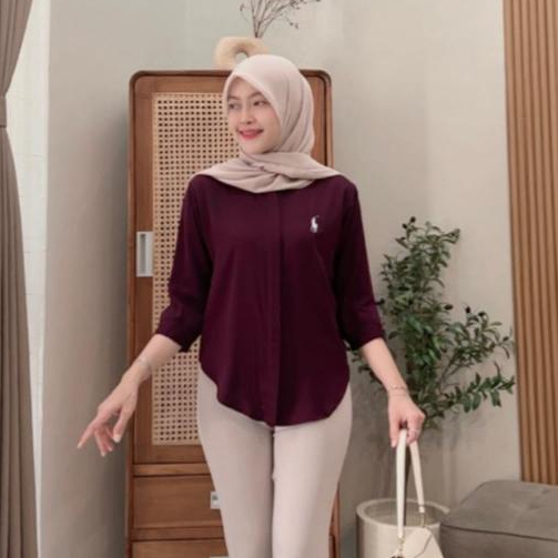 Kemeja Bordir Logo Atasan Wanita Rayon Twill Lengan 7/8 Terbaru Kemeja Wanita Oversize