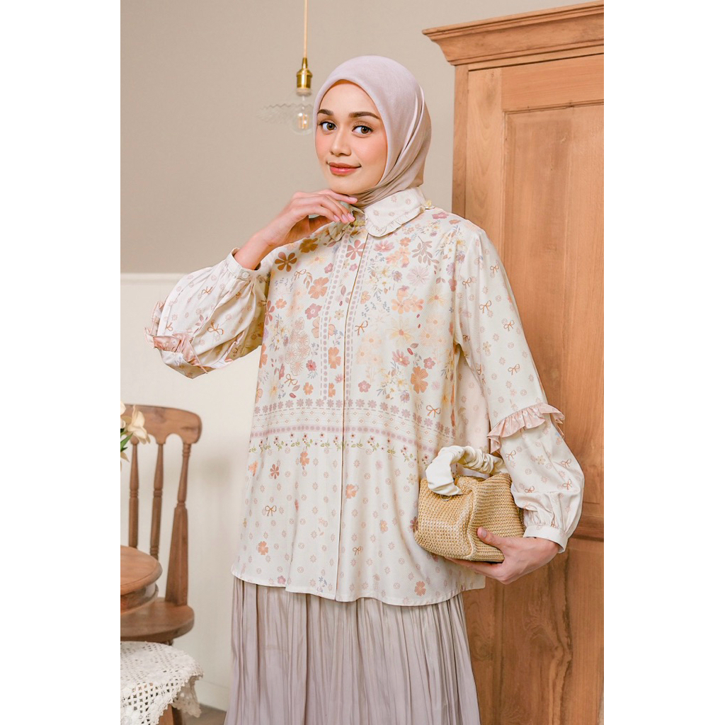 Kienka - Denara Blouse Monogram Bunga-Bunga Printed Premium