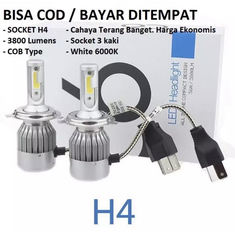 Lampu Mobil Headlight LED H4 COB 2 PCS WARNA PUTIH 6000K 3800 LUMENS 36W VOLTASE 8-48V