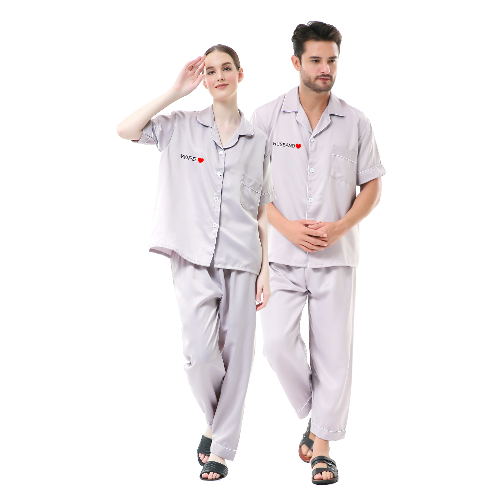Zavyn Piyama Couple Satin CP HUSBAND LOVE & WIFE LOVE Lengan Pendek Celana Panjang