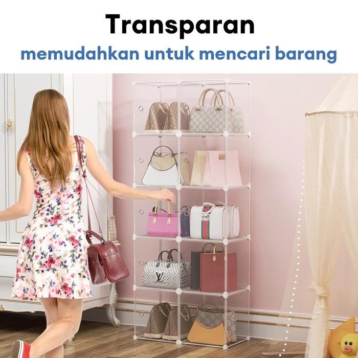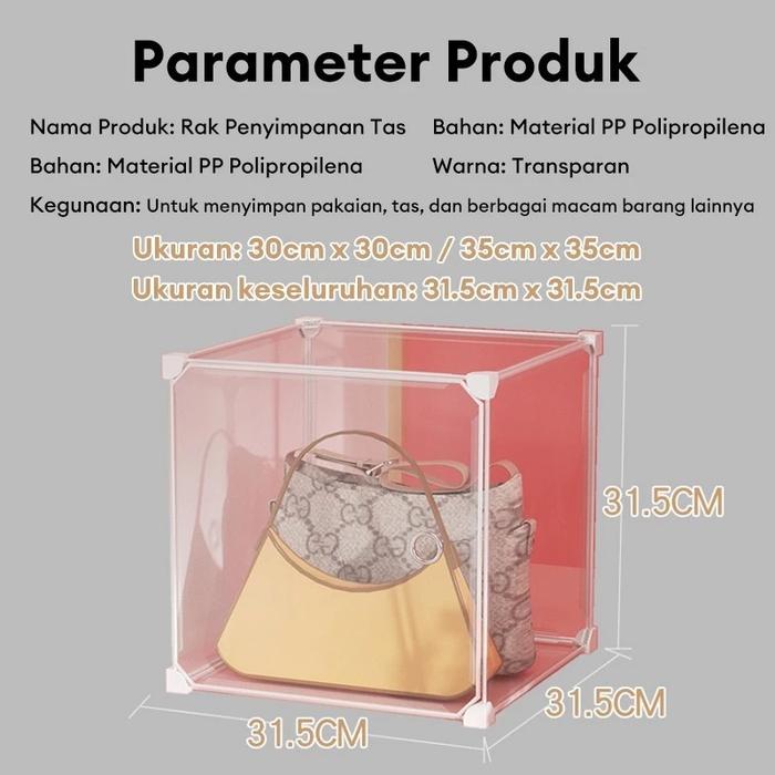 Tidy Tribe Rak Tas Transparent/Rak Tastransparan Kedap Debu/Lemari Boneka Mainan/Lemari Penyimpanan Helm Sepeda Motor/Le