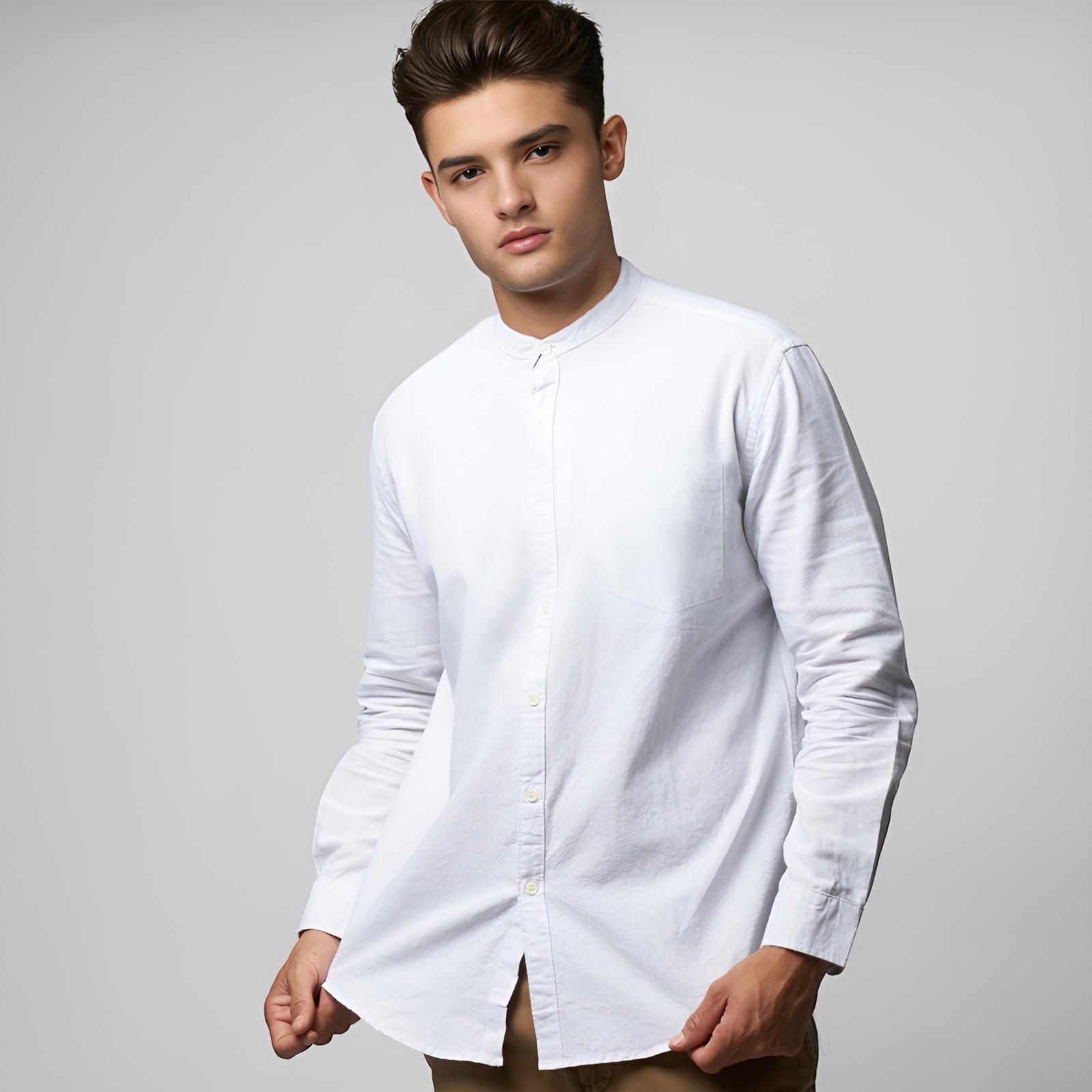 Peternation kemeja oxford lengan panjang kerah sanghai warna putih Koko Muslim Pria Dewasa Atasan