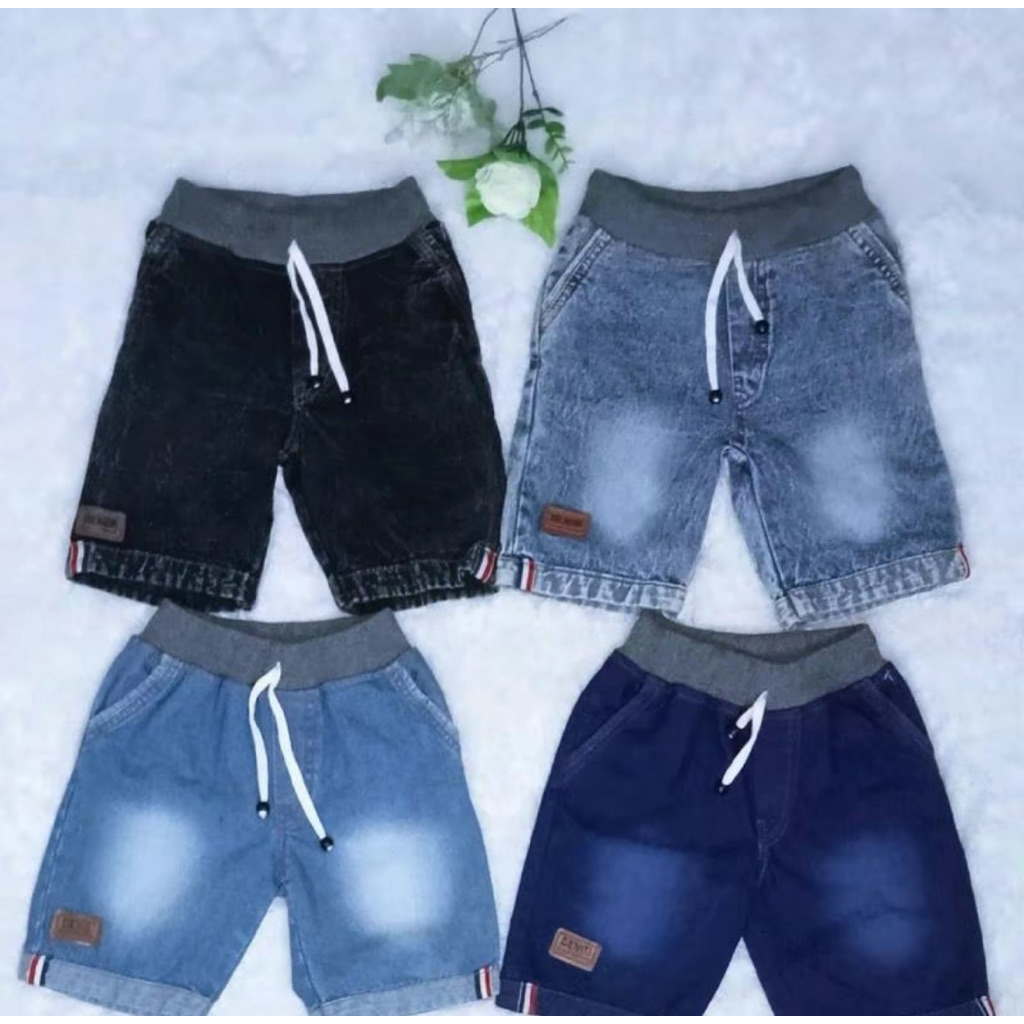 Celana Jeans Pendek Anak (PAKET 5 PCS )1-14 TAHUN CELANA JEANS PENDEK melar Anak Laki Laki Pinggang Rib Polos Jeans Pend