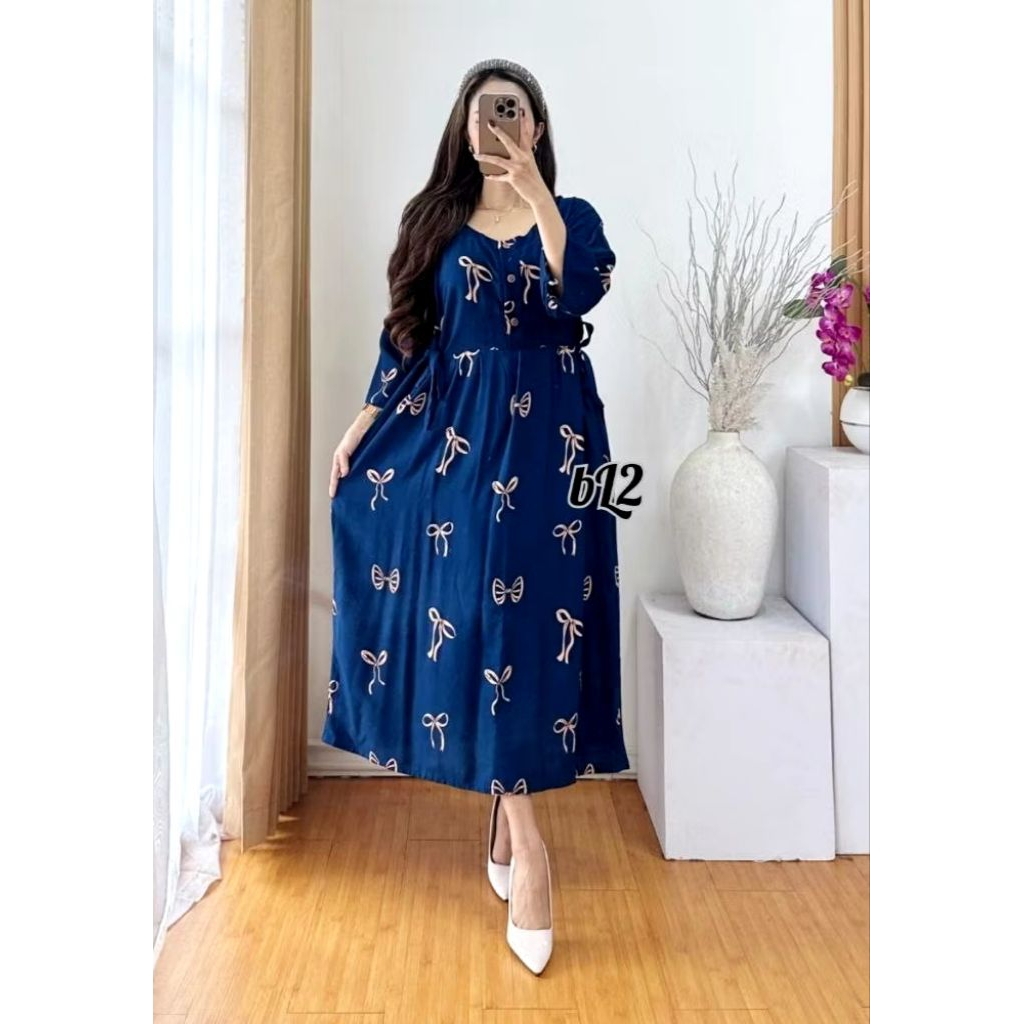 Daster Kekinian Terbaru Dress Chibi Jumbo Rayon Premium Busui Friendly Kancing Depan Lengan 3/4 Bisa untuk Ibu Hamil Men