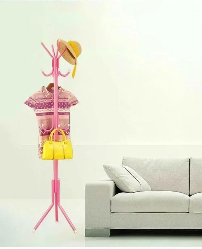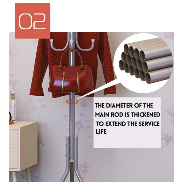 Rak Gantungan Baju Rak Topi Ukuran 52 X 52 X 170 Cm / Rak Tas Gantung Topi Baju Dengan 9 Kait / Stand Hanger Gantungan B