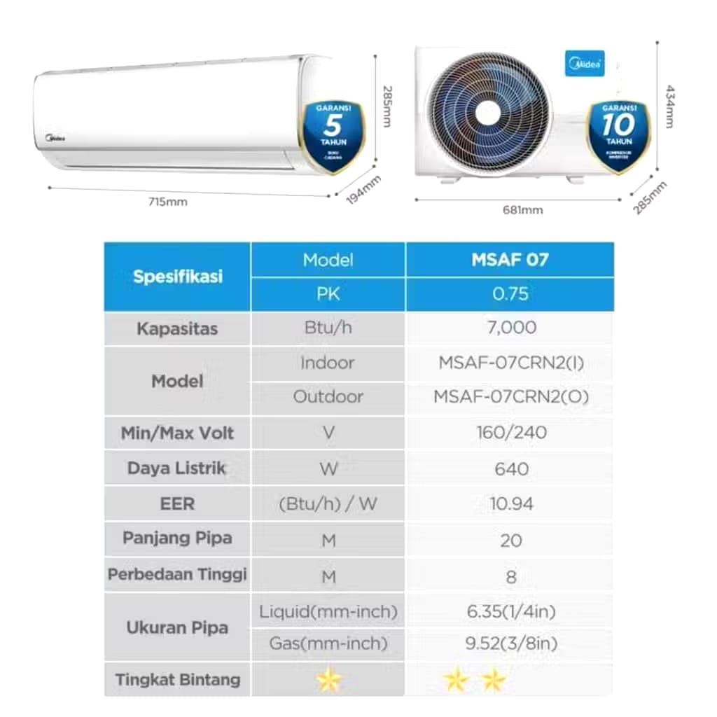 AC MIDEA 3/4PK MSAF-07CRN2/MIDEA AC 0.75PK NEW SERIES KONDSI BARANG BARU LENGKAP
