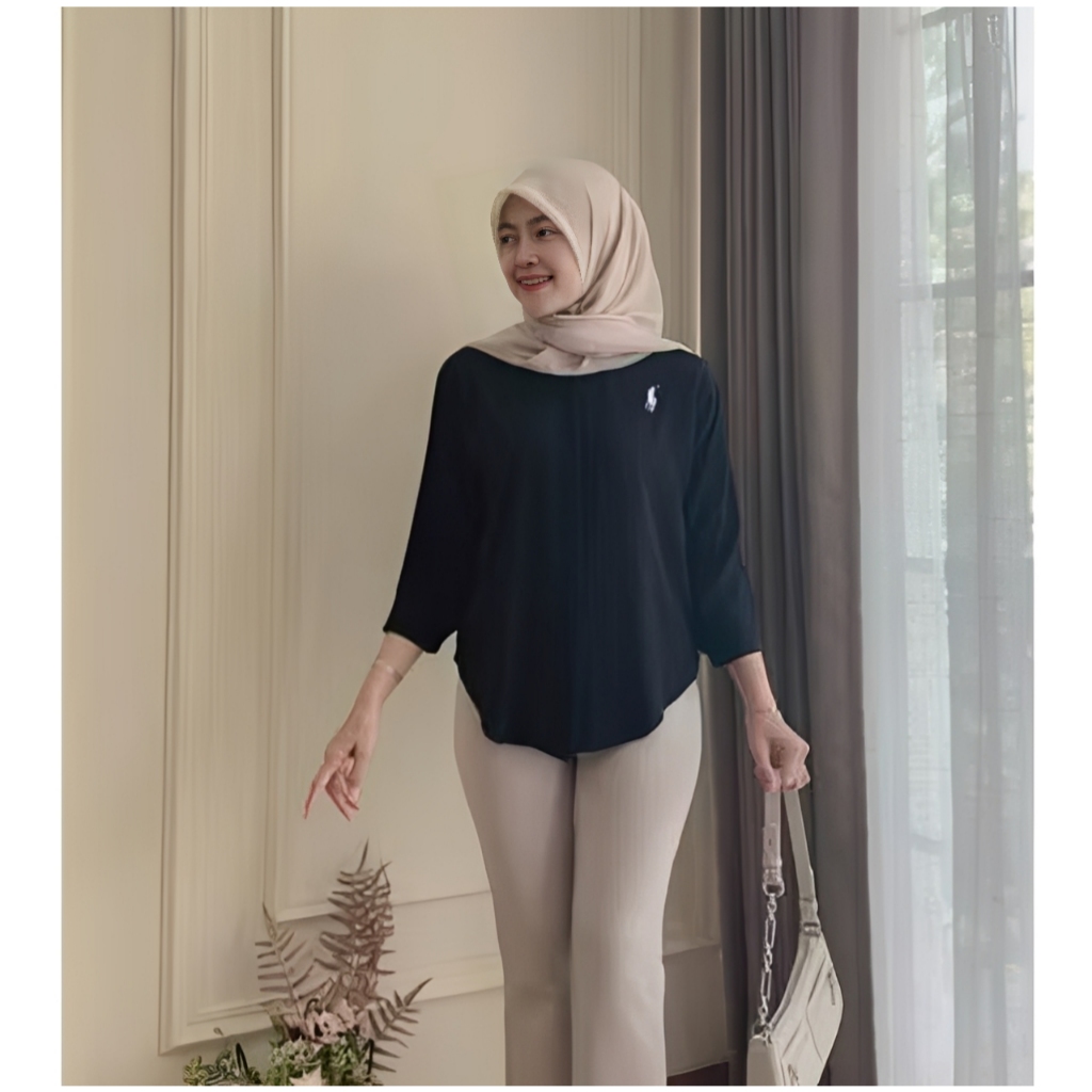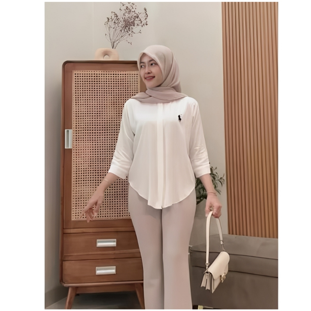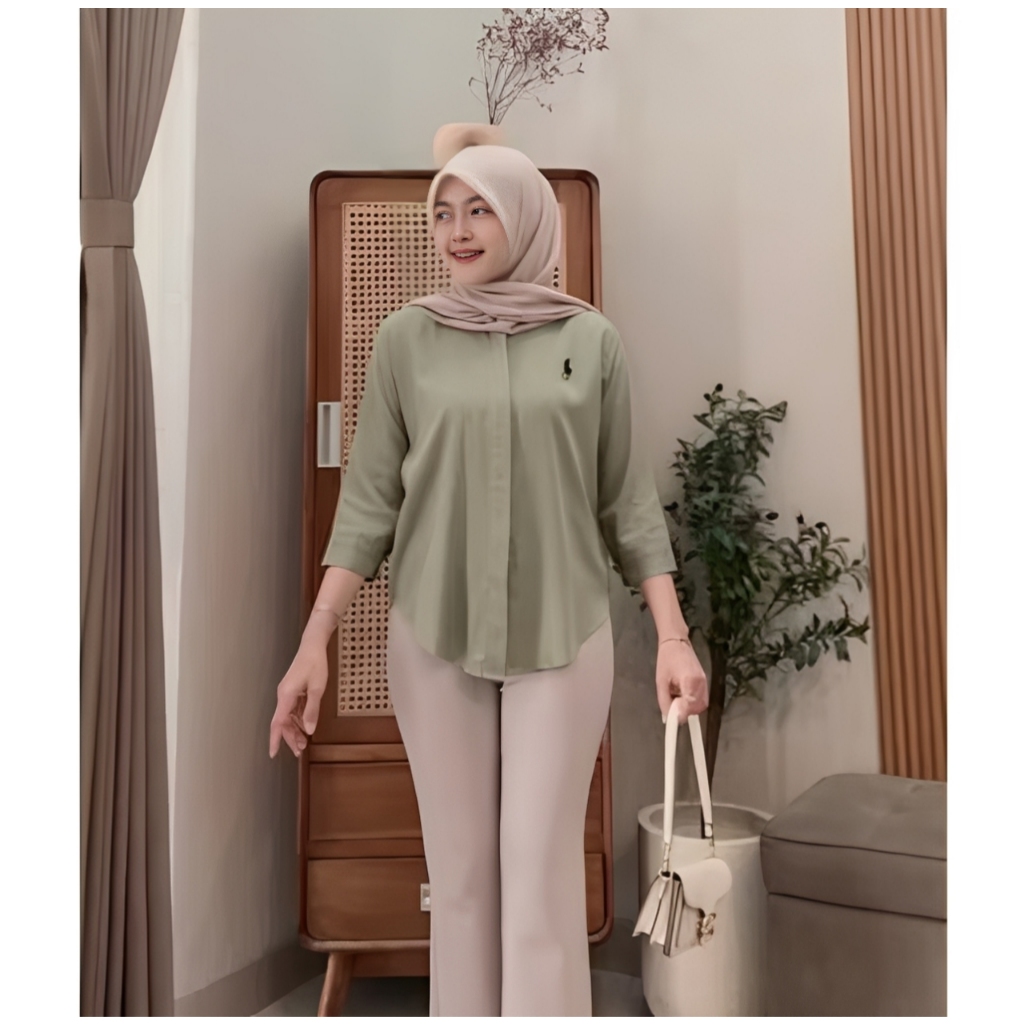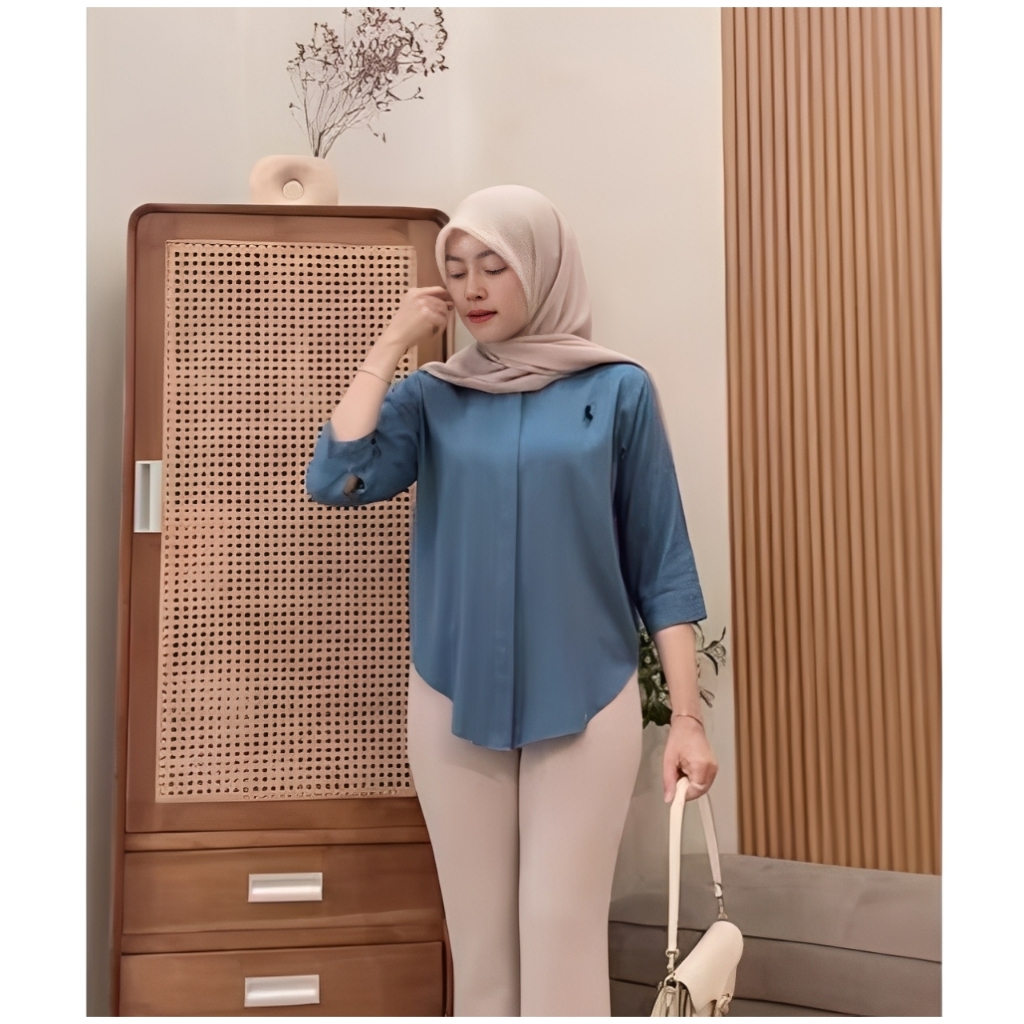 Kemeja Bordir Logo Atasan Wanita Lengan 7/8 Terbaru // Atasan Katun Baju Cewek Oversize Basic