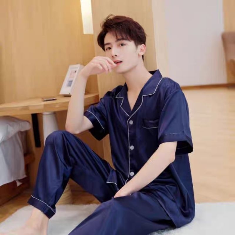 Rulif Stelan CP Piyama Baju Tidur Cowok Satin Polos