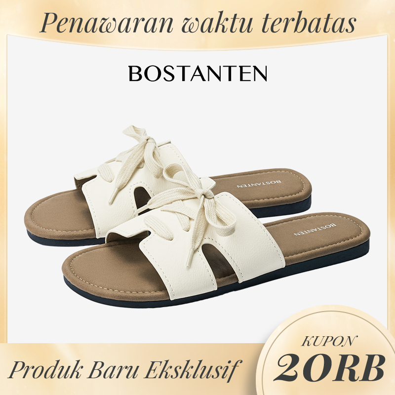 BOSTANTEN Sandal Flat Wanita Terbaru Slop Flat Sol Karet Anti Licin Sendal Cewek Kekinian