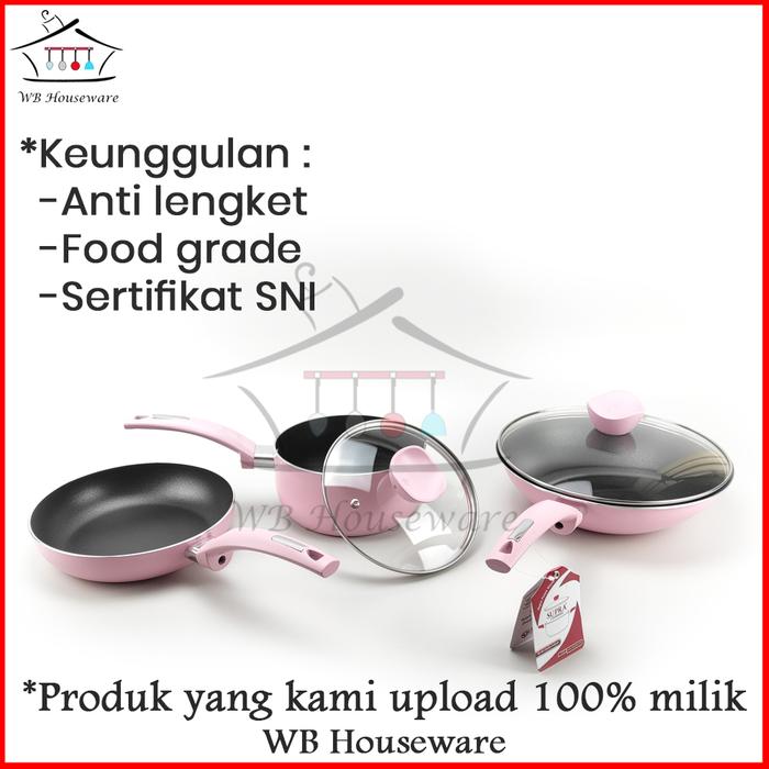 5pcs Cookware Set Supra Pastel Pink Renatta / Dahlia panci set supra / Frypan Teflon