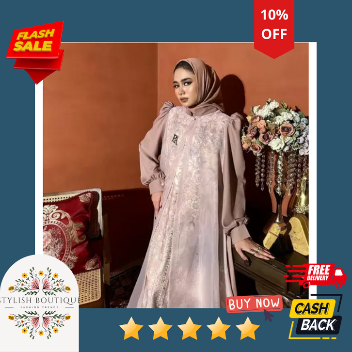 [Star] Gamis Lebaran Elly Arsy 2026 Camila Dress Material Lady Zr Organza Pattern Exlusive By Elly Arsy Only Gamis