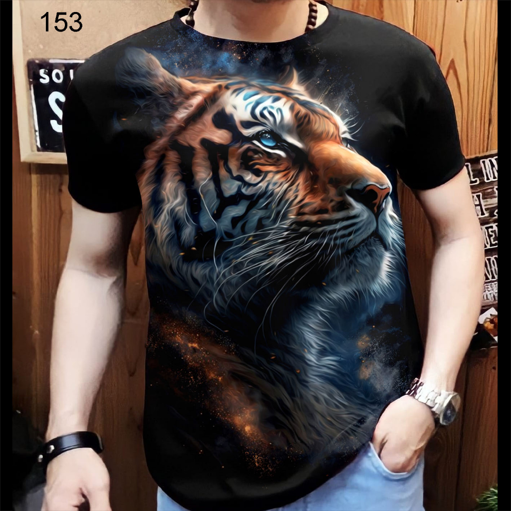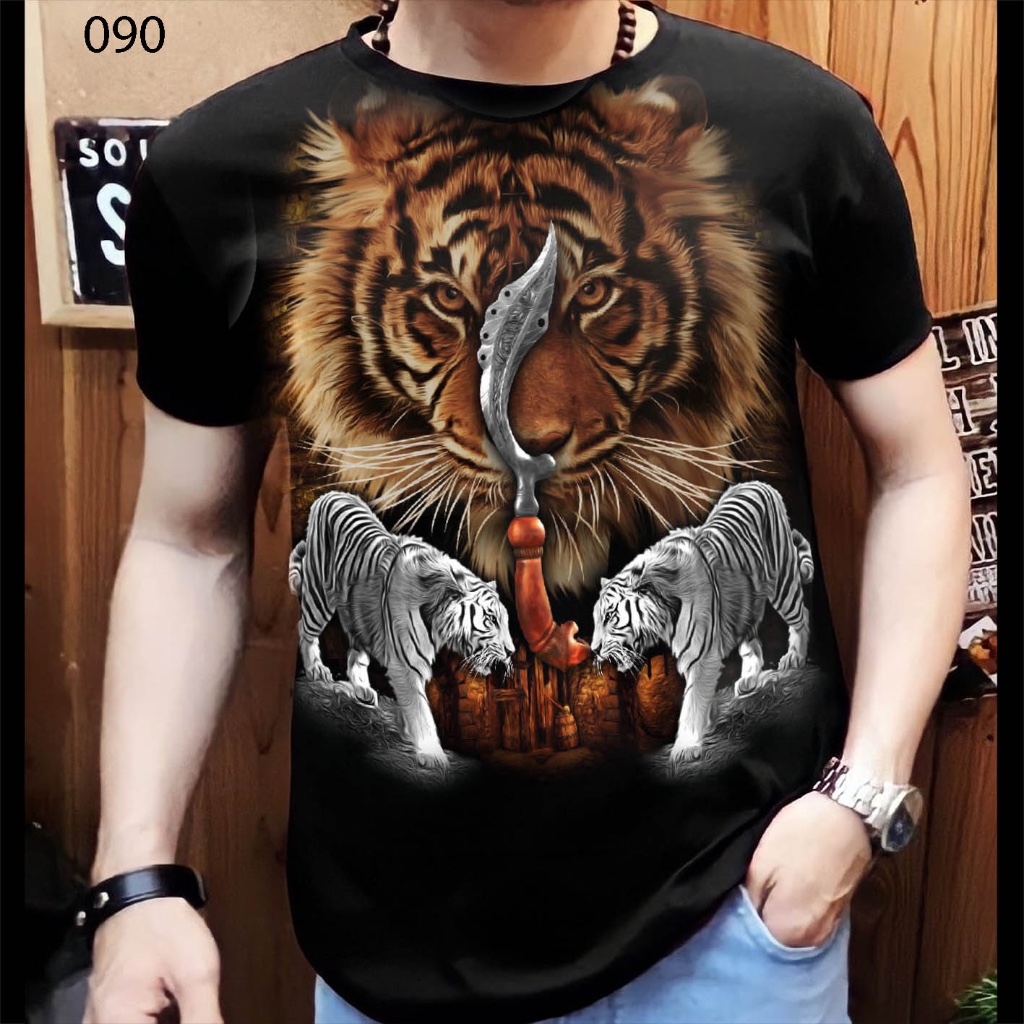 Kaos Distro Pria Motif Macan Katun Semi Cotton