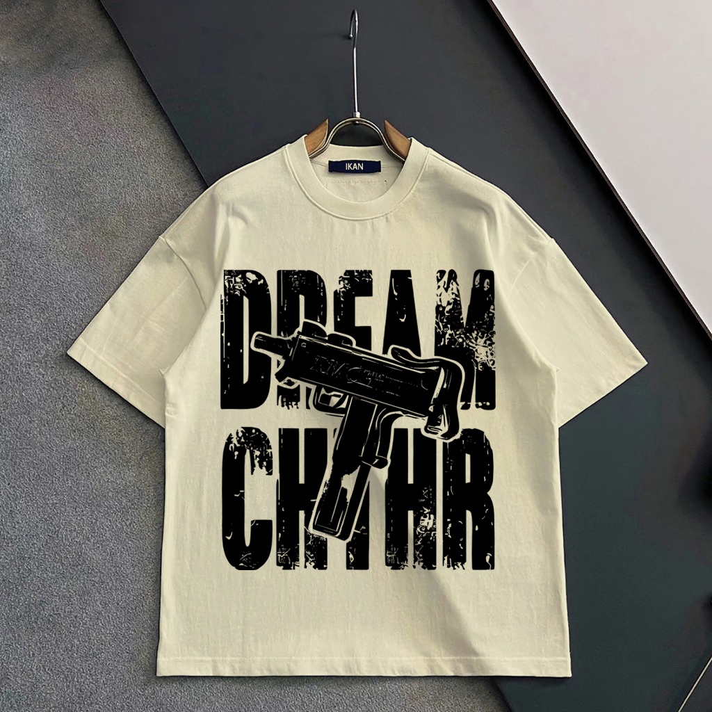 AUZY American retro Style T-shirt Oversize DREAM CHIHR Print top| Kaos Wanita Hitam | Kaos pria dan wanita | Street Styl