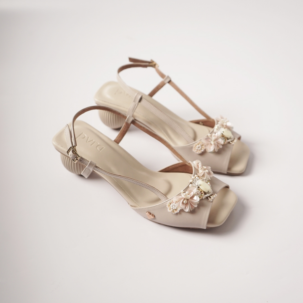 PVRA SANDAL WANITA JENNIE HEELS ASH IVORY