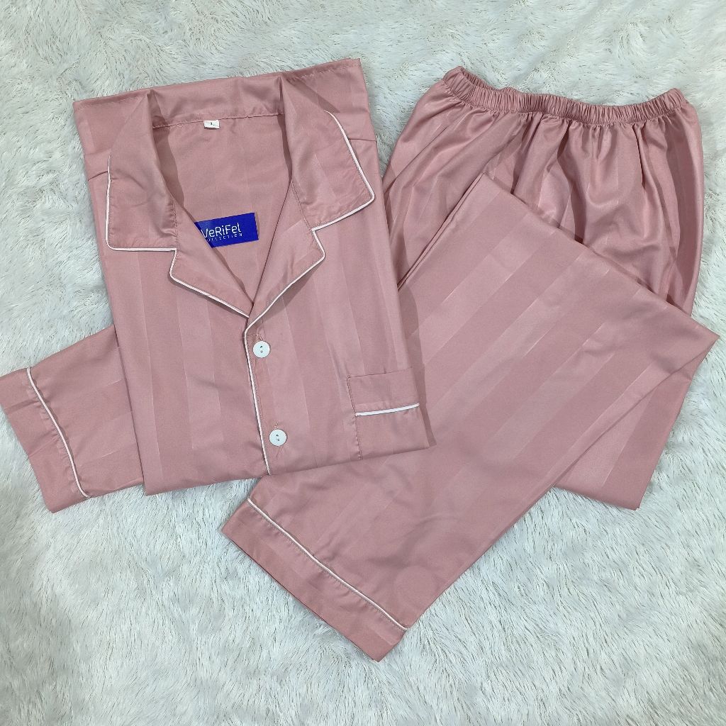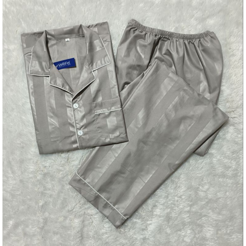 VeRiFel Piyama Salur Baju Tidur Pria/Wanita Remaja/Dewasa/Jumbo Katun Setelan CP/PP Promo Murah Harga Grosir fit to BB 90kg TB 175cm