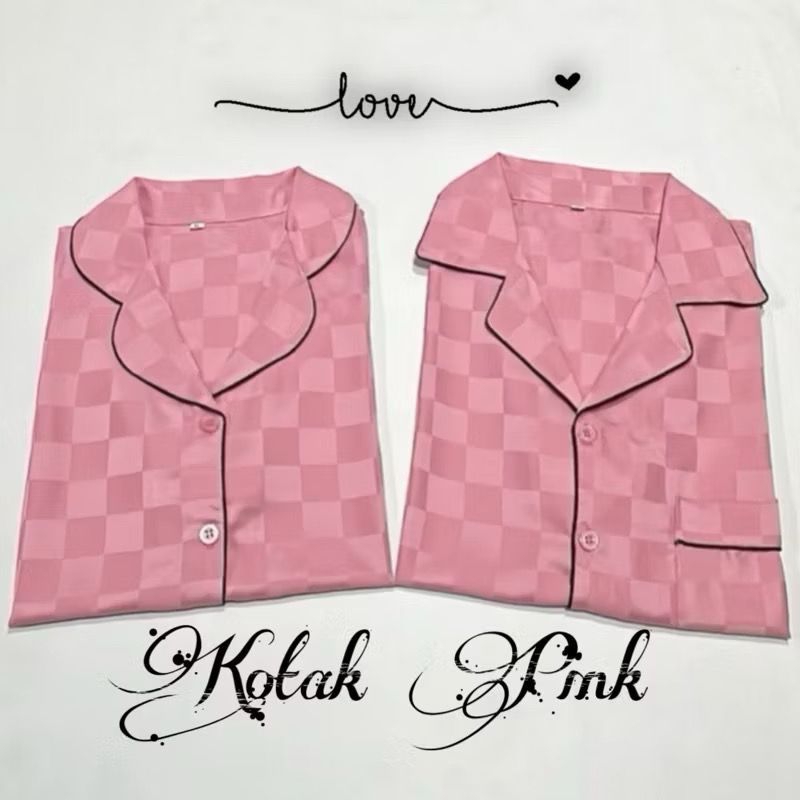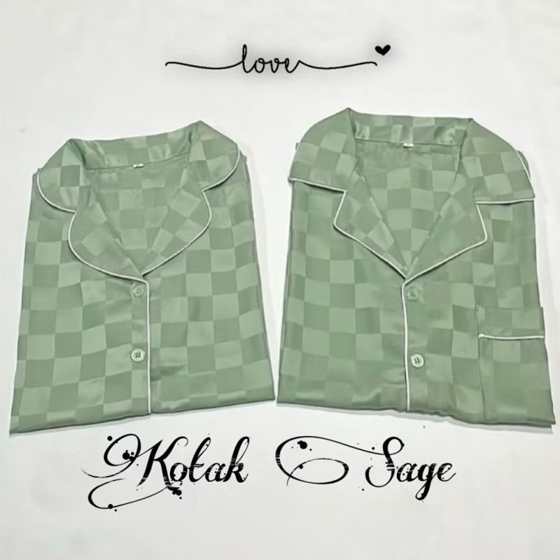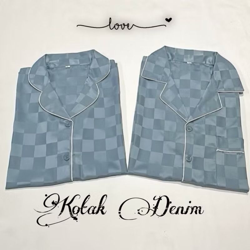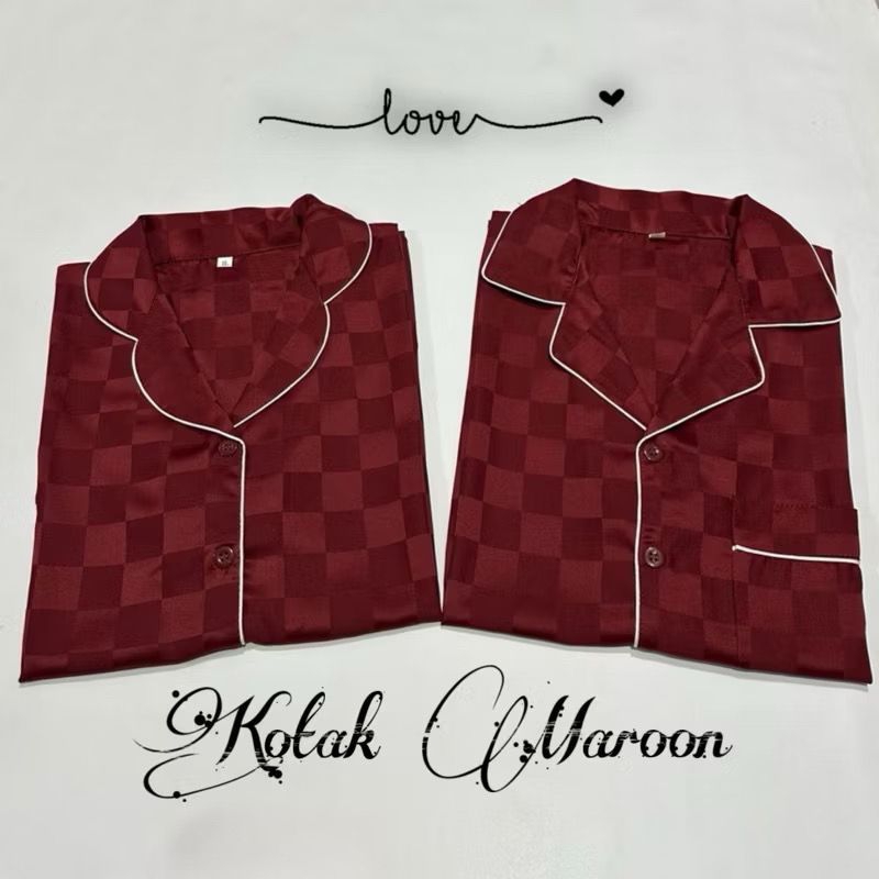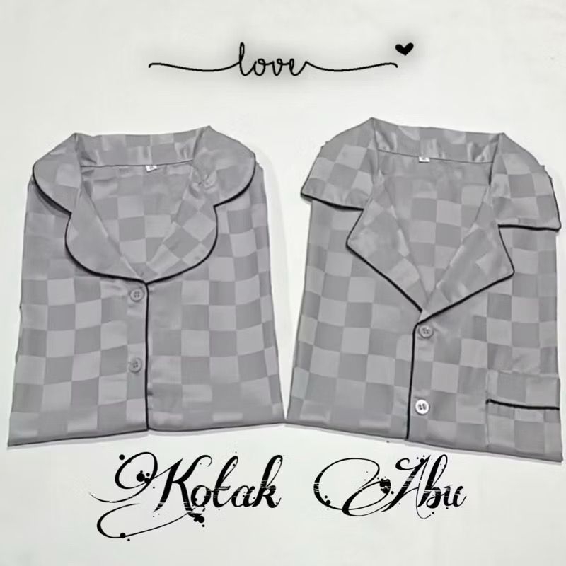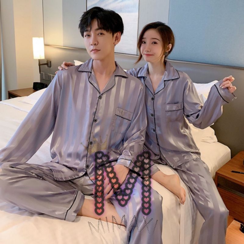 stelan couple pp satin silky kotak salur bajutidur piyama kekinian