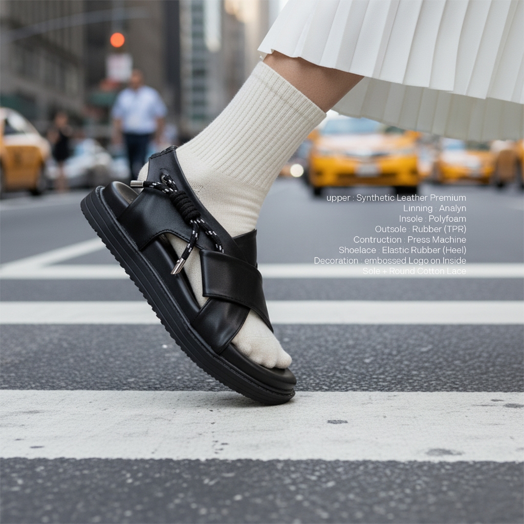 TRAGEN FOOTWEAR CARIE BLACK SANDAL PLATFORM WANITA