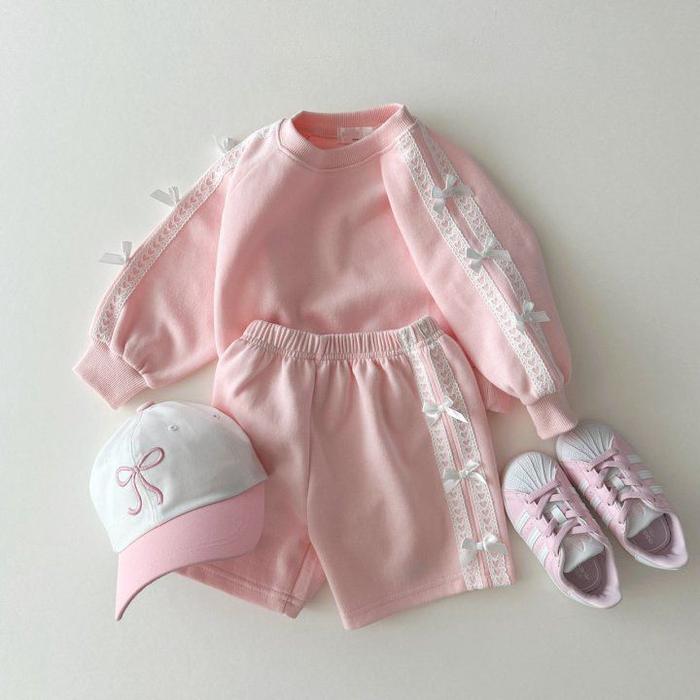 Murah SETELAN RENDA PITA UNTUK ANAK PEREMPUAN UMUR 1-8 TAHUN BAJU ANAK TERBARU MODEL CANTIK - Pink 1-2 TAHUN Keren