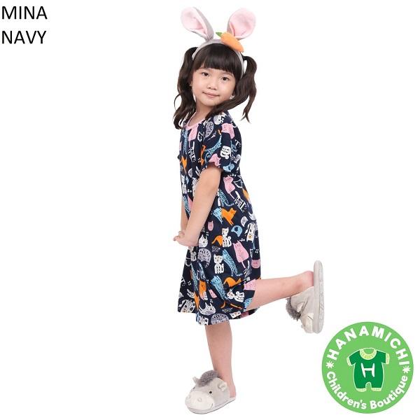 Terlaris Kiminori MINA Dress Baju Anak Perempuan Lengan Pendek Fashion - NAVY XS Keren
